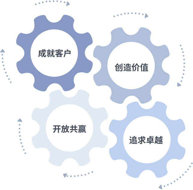成就客户是一切决策的出发点,创造价值是衡量所有工作的标准,追求卓越是milan米.兰做事做人的态度,开放共赢是milan米.兰的格局也是最终的结果。价值观的齿轮环环相扣,推动着组织里的每个人不断向前。